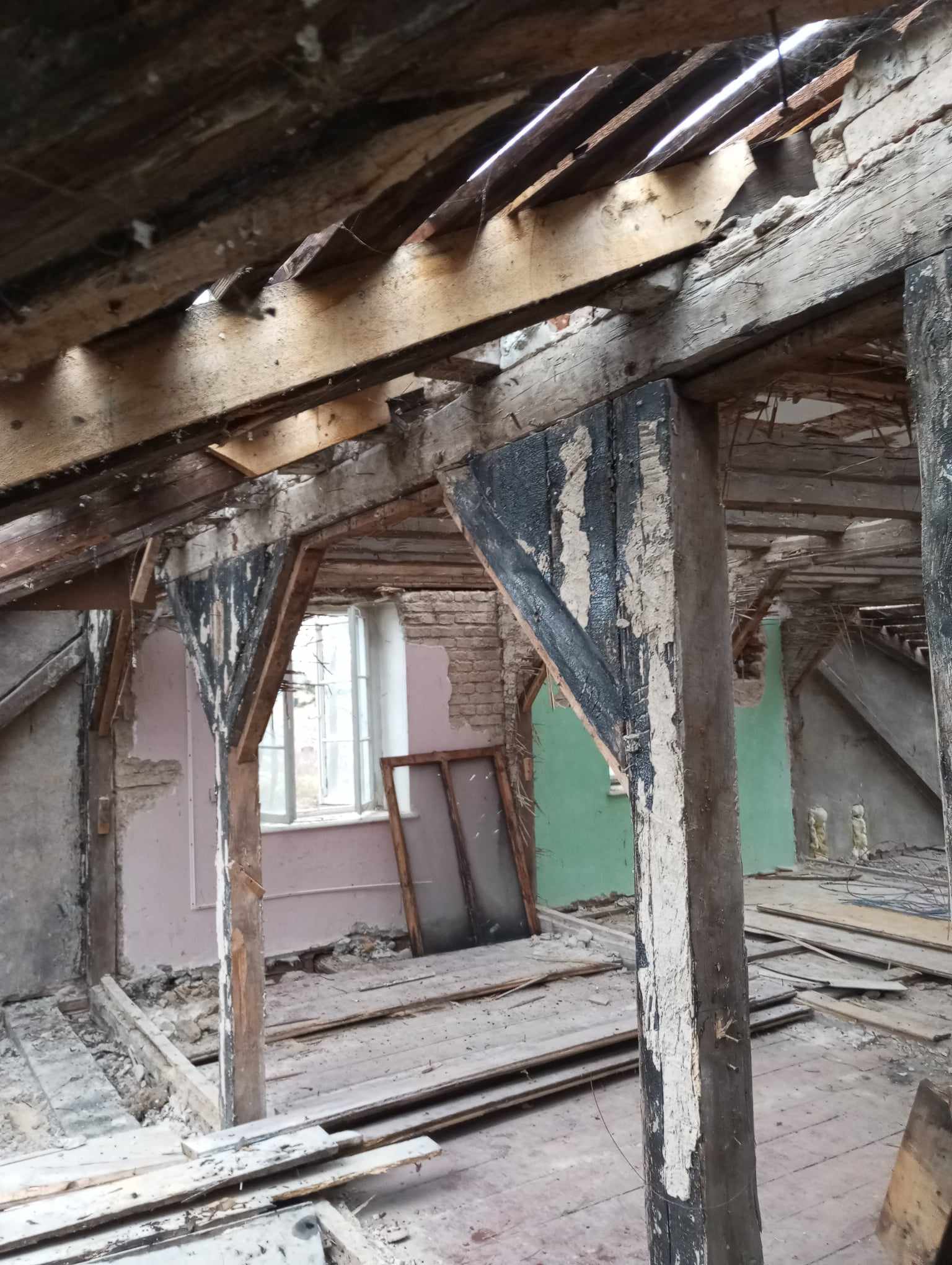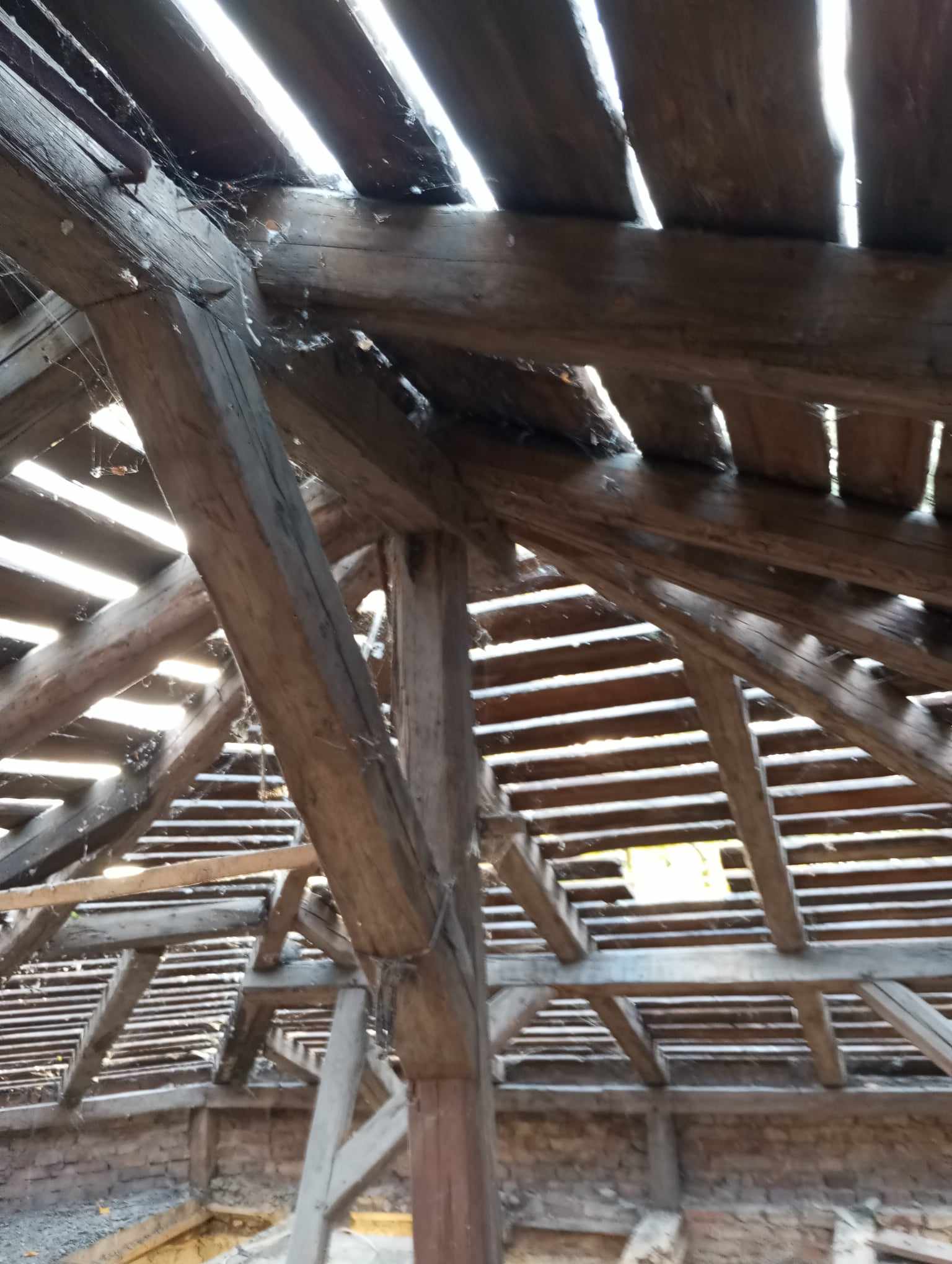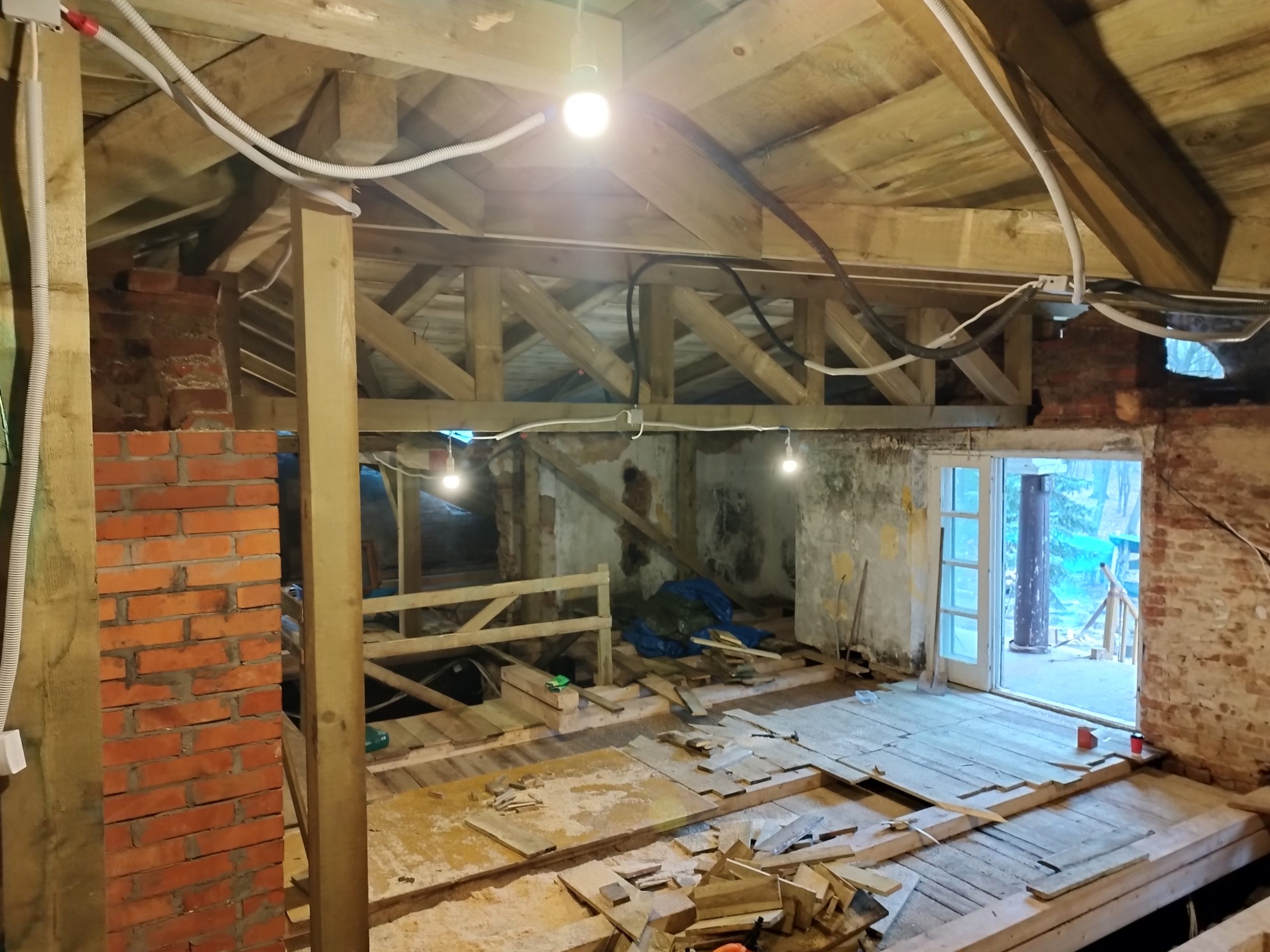 Kompleksowa Rekonstrukcja więżby Dachowej na zabytkowym Dworze w Nadułkach. Zakres prac obejmował demontaż starego poszycia rozebramie starej więżby dachowej, demontaż starego stropu,ułożenie nowego stropu, wykonanie nowej więźby dachowej w której tylko kilka elementów zostało zmienionych w stosunku do oryginału na prośbę inwestora oraz za zgodą konserwatora zabytów pełne deskowanie połaci oraz papowanie. Wszystkie prace przebiegały z zachowaniem szczególnej ostrożności o to aby budynek nie został zalany przez deszcze.